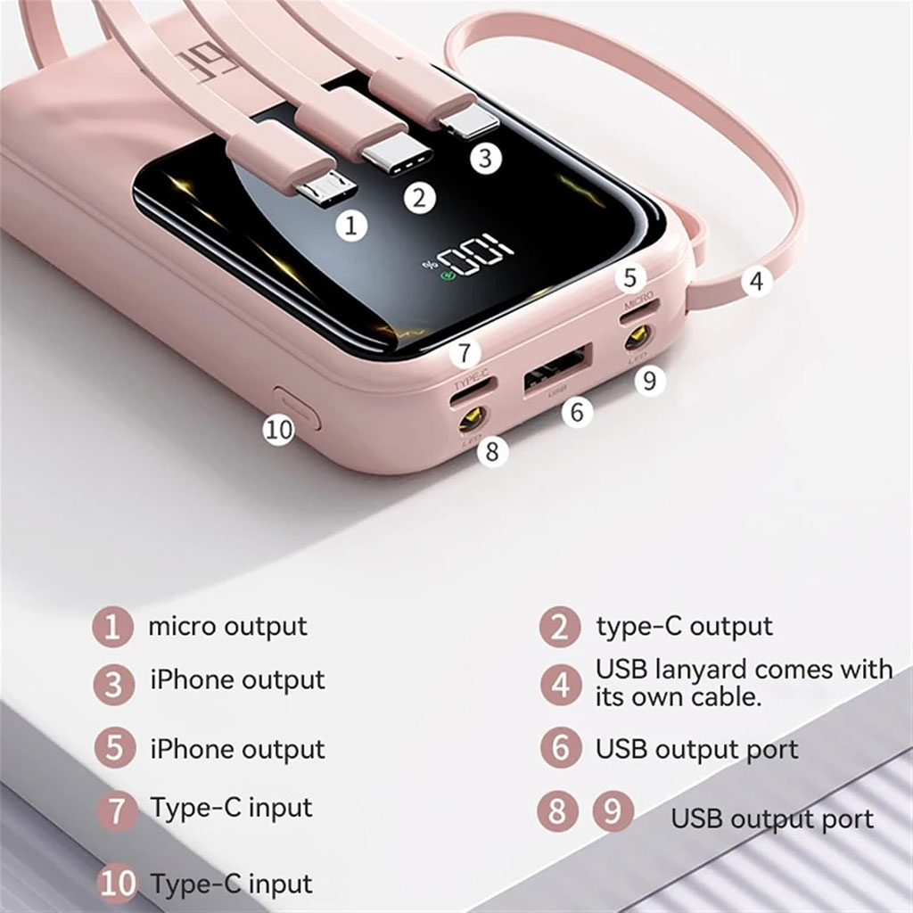 Power Bank Fast Charge Gevo 10000mAh avec Cable intégré LCD Screen – باور بانك سعة 10000ميلي أمبير مع كابلات شحن مدمجة