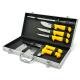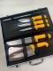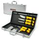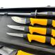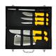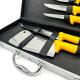 المقاوم للصدأ، وشحذ فولاذي، وساطور، وخطاف لحم، ولوح، وكلها مخزنة بدقة في علبة ألومنيوم قوية وأنيقة لسهولة النقل والتخزين. توفر المقابض الصفراء المريحة قبضة مريحة وآمنة، حتى أثناء الاستخدام لفترات طويلة.